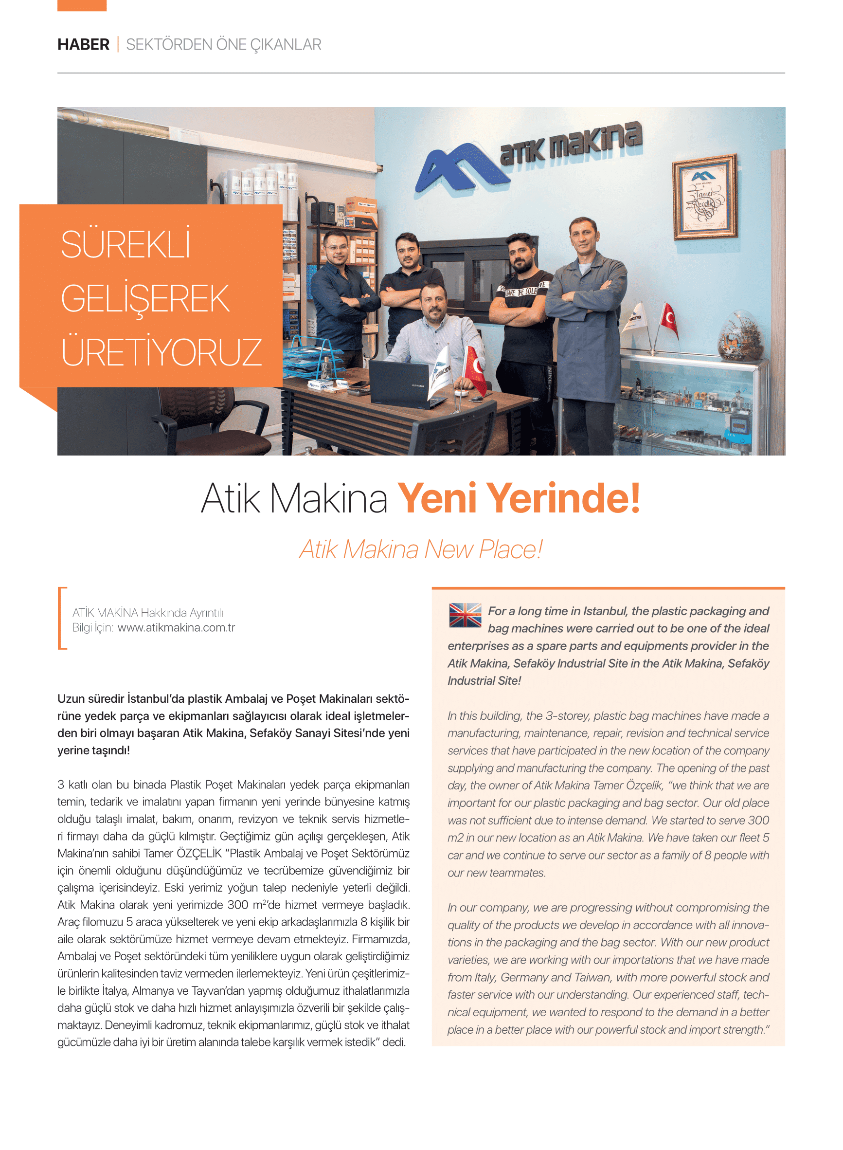 An exclusive interview with Atik Makina covering plastic bag machine spare parts, technical services and R&D solutions with a wide product range. -